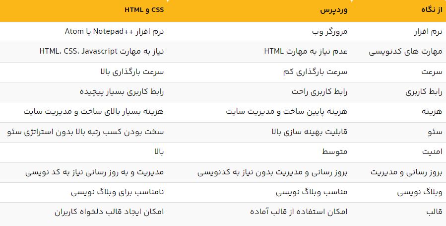 - سایتهای وردپرسی انعطاف پذیر بالایی دارند اما وب سایتهای HTML برای کوچکترین تغییرات نیاز به کدنویسی دارند.
